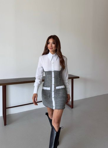• KADIN UZUN KOLLU CEP VE DÜĞME DETAY MİNİ GÖMLEK ELBİSE