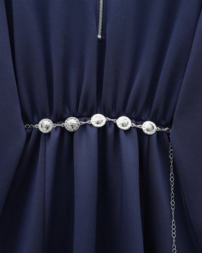• Boğazlı Yarım Fermuarlı Beli Büzgülü Kemerli Scuba Elbise Laci