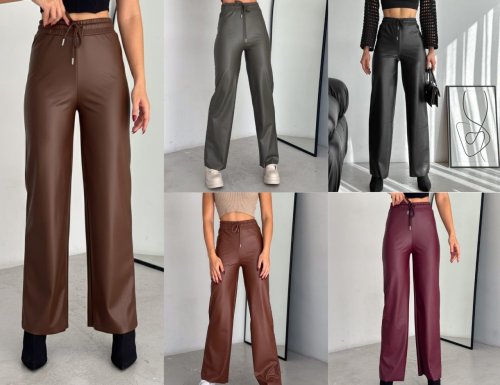 • Yüksek bel geniş paça içi şardonlu deri pantolon