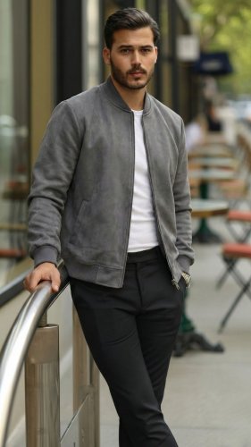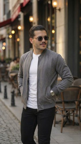 Erkek Scuba Süet Kumaş Bomber Hırka